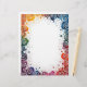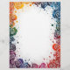 Colorida e entusiasmada, esta cabeça-de-letra tem um salpante em amarelo, breu, azul e laranja, com espirais brancas, ao redor de um grande espaço central. Perfeito para correspondência casual, newsletters artísticas e convites divertidos.