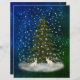 Feliz Natal, dia de nevar, abeto e coelhos brancos. Saudações de Natal.