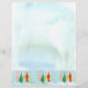 Feliz papel de Natal para cartas de Natal com um design de vintage inspirado em formas de árvores de férias em derivas de neve em tons suaves de esmeralda, algodão doce rosa, ouro amarelo e muito mais com um fundo de água azul gelado.