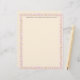 Flores cor-de-rosa doces e delicadas atravessam todos os lados desta papelaria de cor pergaminho. Muito feminina e vintage. A parte de trás é a mesma cor de pergaminho da frente, sem texto ou borda.