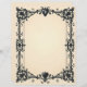 Black hearts at the top and bottom of an ornate, Victorian style frame on a parchment background creates a beautiful Gothic stationery. The top heart holds your monogram.