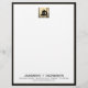 Esta luxuosa cartola comercial apresenta um impressionante medalhão de logotipo em ouro, escovado, com duas iniciais sobrepostas, representando sua marca com elegância. O fundo branco é enquadrado com uma ousada fronteira impressão de couro preto, criando um olhar sofisticado que é perfeito para correspondência comercial. Personalize com seu próprio nome e informações de contato para criar um letterhead verdadeiramente personalizado que certamente irá impressionar.