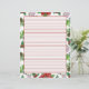 Um papel timbrado de cartaz vermelho de Natal para escrever as suas cartas de férias a amigos e familiares decorados com plantas de férias botânicas de poinsettias, rosas de Natal, bagas ocas, cones de pínus e morango de baía desenhado com tinta e água.
