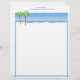 Linha costeira da praia com artigos de papelaria azuis do costume do oceano das palmeiras. Caracteriza um design litoral, superior da beira de 2 palmeiras na areia na praia, com água azul do mar e os céus azuis no fundo. Uma beira alinhada de harmonização do azul continua ao longo dos lados e da parte inferior.  Um espaço branco na parte superior, como um encabeçamento, é fornecido para sua personalização com uma pia batismal azul de harmonização. Apenas adicione seu negócio ou nome e endereço pessoal. Se um negócio, lá é sala sob o endereço para sua escolha de um do seguinte: um número de telefone, ou um Web site, ou endereço email. Um design à moda do divertimento que seja contemporâneo e clássico.