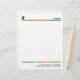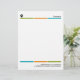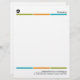 Um design de modelo com duas linhas, cada uma com três cores. Essas linhas são colocadas acima e abaixo a 1,5 polegadas e têm margens de 0,5 polegada. Um pequeno logotipo decorativo (que pode ser substituído pelo seu próprio logotipo ou um símbolo diferente) é colocado à esquerda, com o nome da empresa à direita acima da linha de tricoloração superior. Email, endereço da Web e detalhes de telefone são colocados a 0,5 polegada da parte inferior. Esse design profissional simples, mas atraente, pode ser personalizado de muitas maneiras.