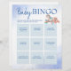 Jogo de bebê chá de fraldas bingo personalizado azul modelo com brinquedos de bebê vintage para um bebê.
