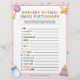 Descodificar a rima de berçário das pistas de emoji. As respostas mais corretas vencem! Entre em contato conosco diretamente caso você precise de uma cópia das respostas para este jogo. Ficaríamos felizes em fornecê-lo a qualquer um que tenha encomendado o jogo.