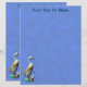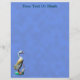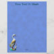 Pato de madeira pintado e esculpido com seu patinho, fortemente curado, sobre fundo azul. Personalize adicionando seu próprio texto.