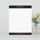 Papel Timbrado minimalista limpo com fundo preto e fonte moderna rosa neon. Personalize para uso personalizado.
