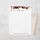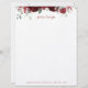 Papel de carta floral de cor-de-água, com coloração aquosa, pintado de peões vermelhos profundos e pulverizações de verduras de eucalipto prateado.