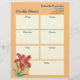 Projetado com base na minha ilustração aquosa da lírio laranja com pétalas cor de laranja brilhantes e delicadas e folhas verdes frescas e escuras. O design é de dois lados, para o planejador semanal dividido em sete seções diárias. Ele tem um fundo laranja claro e pode ser personalizável com seus próprios textos.