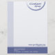 Uma cabeça limpa de letra comercial moderna com um painel de efeito 3d de meio círculo para ajustado do nome da sua empresa, ela é colocada a 1/2 pol da borda direita para equilibrar o texto da letra. Ele pode ser personalizado de várias maneiras. O rodapé que está coberto com uma banda mais leve é de 1,5 pol e contém detalhes de endereço e contato telefônico. A margem sombreada à esquerda tem 1,37 pol de largura. Como as margens na maioria dos processadores de texto padrão são 1,5 pol, isso deve fornecer um deslocamento de 1/8 pol quando você digita uma letra usando padrões. Os detalhes da Web e do e-mail são colocados à direita logo acima do rodapé.