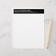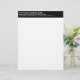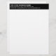 Os designs de textos simples e simples são frequentemente fáceis de entender e lembrar. Texto simples Cabeçalho design de letterhead que você pode personalizar para anunciar sua empresa ou para promover seu nome de marca para clientes ou clientes. Fornecimento personalizável de escritório que você pode usar para criar reconhecimento de nome de marca. O design no título é constituído por textos brancos e planos alinhados à esquerda sobre fundo preto. O conteúdo é o nome, endereço, número de telefone, e-mail e site da sua empresa ou empresa.