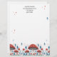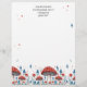 Bela e elegante papelaria personalizada. Fezes vermelhas muito largas rodeadas de flores azuis bonito criam o pano de fundo perfeito para suas letras e anotações cuidadosamente escritas.