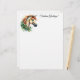 Um belo unicórnio é enquadrado com uma coroa parcial de "holly" com bagas vermelhas nesta adorável e mágica papelaria de férias. Perfeito para quem ama unicórnios, fantasia e magia.