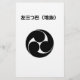 【ひだりみつともえ】巴紋/巴の左右は渦の巻き方ではなく、作図上から作られた合理的な名称なのでした。こうしたことは、上絵師ならすぐに判ることですが、一度も紋を作図したことのない先生はただ渦の巻く方向にだけ気を取られるのでしょう。しかし、上絵師でも咄嗟に巴の左右に迷うことがあります。そんなとき、上絵師はうまい口伝を思い出します。・・・まず左掌を握って手首を見ます。するとその形が左巴の形になっているのです。右掌を握れば、たちどころに右巴の形が現れるわけです。(泡坂妻夫著"家紋の話" P61)/この図案は、地抜き(摺込み)の仕様です。摺込みというのは・・作図して巴を切り抜いて型紙を作り・・この型紙を生地の上に置き、塗料を刷毛で摺込む、その技法からきた言葉です(泡坂妻夫著"卍の魔力、巴の呪力" P146参考)