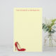 A bomba vermelha do salto alto da forma calça os artigos de papelaria de papel. Um par de saltos altos ou de estiletes vermelhos, é o emblema para a parte inferior de cada folha. Personalize-o adicionando seu nome da empresa ou seu nome e exprimindo - ou suprima-o do fraseio para uma folha lisa do papel bonito, ou o uso edita para mudar também a cor do fundo. Apenas use personalizam todas as mudanças. Você pode precisar de clicar fora da caixa de texto às mudanças finalizadas do fraseio.