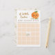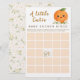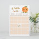 A sweet watercolor Little Cutie baby shower bingo game with a smiling orange, white blossoms, sage vines, and a soft background. Perfect for citrus baby showers.