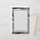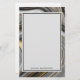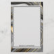 Papel de papelaria com um desenho abstrato com um padrão mineral de geodo agado. espirais Douradas, cinzas, brancas e pretas formando ondas de cor elegantes. Um retângulo de cinza leve com uma borda fina e preta colocada sobre cima para que você escreva dentro. Personalize com seu nome na parte inferior. Perfeito para transmitir um ar de classe e elegância.