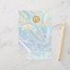 Um elegante e moderno design de ouro brilhante falso, azul e tons de aqua todos se misturaram em um efeito líquido de mármore/derramamento de tinta. Esta trabalho de arte foi feita para dar a sensação de geodes & mármore, ou uma tinta líquida derramando arte. Personalize esta papelaria com seu próprio monograma inicial. Altere a cor e a fonte da sua inicial para ser qualquer cor que você quiser.