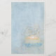 A roupa azul da noiva ao redor de uma vela de casamento.