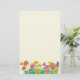 Papel de papelaria brilhante e colorido, decorado com um jardim de flores pansy pintadas em cor d'água em vermelho, laranja, amarelo e roxo.