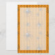 Um fundo laranja brilhante cria uma base perfeitamente temática no Halloween para um padrão repetido de teia negra rastejando com aranhas. Essas aranhas, modeladas após a falsa viúva, apresentam um crânio branco brilhante em seus abdômen e outras marcas brancas em seu corpo e pernas.