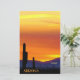 Essas folhas de papel exibem uma pintura digital de uma foto original de Karen Coffelt de um pôr do sol amarelo e laranja claro sobre as montanhas azul-roxo do Deserto de Arizonas Sonoran com cactos de Saguaro na silhueta. O sudoeste do deserto apresenta alguns dos pôrs do sol mais espantosos de qualquer região dos EUA. Esta é uma vista da Trilha dos Motivos de Massacre na Selva de Superstição, que fica fora do Parque Estadual dos Holandeses Perdidos, em Apache Junction, Arizona, e é um destino de caminhada popular no outono, primavera e inverno. Personalize-os usando os vários estilos de fonte e cores diferentes do Zazzle. Adicione um ou mais dos muitos ícones divertidos que o Zazzle forneceu para você ou personalize-o na ferramenta design clicando em "clique para personalizar mais". Divirta-se fazer seu! Se precisar de ajuda, por favor, não hesite em me contactar, e ficarei muito feliz em ajudá-lo. Você pode entrar em contato comigo em KarenCoffelt@wolfmoonartanddesign.com. Obrigados de procurar! Direitos autorais originais de arte digital 2020 por Karen Coffelt.