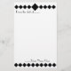 Papel de papelaria sofisticado com um simples design de argila preto no topo com um diamante maior no centro. Parte inferior apresenta design de argyle preto. O texto mais alto diz, "da mesa de....." No texto inferior lê-se: ".....Seu nome aqui" Todo o texto pode ser personalizado. O estilo de fonte, a cor, a posição ou o tamanho podem ser alterados com a ferramenta design.