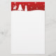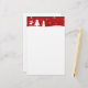 Simples ilustração de Natal moderna e minimalista, com silhuetas brancas de renas, árvores, bonecos de neve e flocos de neve, com Feliz Natal a saudar de fundo vermelho.