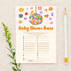 Este é um Hippie Groovy Vintage da Retro 70, chamado Jogo de Chá de fraldas Raça do Nome do Bebê. *Raça do nome do bebê - Anote um nome de bebê que começa com cada letra. A pessoa com mais nomes ganha! Chá de fraldas de esfera Disco, ideias de chá de fraldas de menina, anos setenta cor-de-rosa atividades de chá de fraldas, jogos de chá de fraldas símbolo de paz de smiley face
