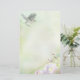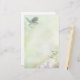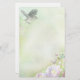 Borboletas e flores suaves e pastéis, com uma ave a voar no papel de carta da natureza do canto superior