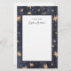 Esta elegante e moderna papelaria apresenta um fundo azul rico e marinho com estrelas elegantes e falsas celestiais de ouro, e uma área central branca para escrever a sua carta.