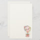 Papel de papelaria com um adorável design com ilustração de aquarela. Um balão de ar quente decorado com flores bonito, vermelhas e rosa. Um pequeno ursinho branco giro sentado na cesta.