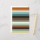 Esse design apresenta faixas horizontais em várias cores de safra, como marrom, laranja, bege, azul, preto, cinza e branco. Realmente conjuga o estilo do século 20 médio.