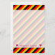 Este design de papelaria apresenta um padrão de listras (ou linhas) coloridas, pretas, vermelhas ou amarelas. Estas cores foram inspiradas pelas da bandeira nacional da Alemanha. Este poderia ser um presente excelente para alguém da Alemanha, ou mesmo para alguém que realmente gosta muito do país da Alemanha. Ele também apresenta um nome personalizável próximo à parte inferior, entre formas cardíacas. [~Z0000011]