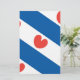 Bandeira da Frísia, uma província dos Países Baixos. É constituído por faixas diagonais azuis e brancas; nas listras brancas estão a pompa vermelha, folhas da lírio-d'água amarela, que podem lembrar um coração, mas, de acordo com as instruções oficiais, "não devem ter forma cardíaca".