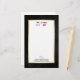 Papel de papelaria personalizado com um esquema clássico de preto e ouro - lábios de kissy cor-de-rosa glamourosos e uma ilustração de bigode retrógrada masculina. Colocado sobre um fundo preto de quadro negro. O texto diz o Sr. e a Sra. e você pode personalizar com seus nomes e endereços. Quadro branco com uma borda de gradiente dourado no centro para escrevendo claramente legível.
