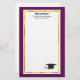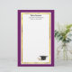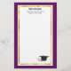 Papel de carta com fundo roxo e uma armação colocada sobre cima, que tem uma borda falsa/simulada de folha de ouro. Ilustrado com boné de formatura e diploma no fundo. Personalize com seu nome e endereço. Simples e elegante.