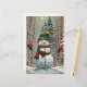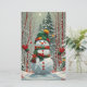 Bonhomme de neige dans la forêt, dans les tons rouge et vert, parfait pour les fêtes de fin d'année