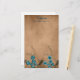 Um lindo design de renda falso, este papel de carta apresenta um fundo de bronze com flores azuis no fundo. Personalize seu nome e texto no topo. Compre o seu hoje!