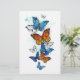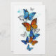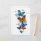 Borboleta azul-clara e voadora morfo e borboleta-monarca laranja num fundo branco. Morpho. Borboleta monarca. Design com borboletas.
