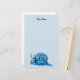 Esta papelaria personalizada é uma cor azul clara e clara com um cartoon azul giro com uma cartoon padronizada no fundo. Personalize seu nome com o modelo.