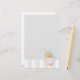Papel de carta com ilustração química. Um bule cor-de-rosa com um pequeno coração cor-de-rosa no centro e um buquê de flores. Delicar borboletas coloridas com sabor a flecha.