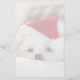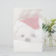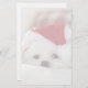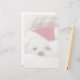 Papel de papelaria com uma fotografia adorável de um bonitinho cão branco vestindo um chapéu de natal vermelho.