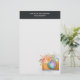 Papel de papelaria com ilustração aquosa de uma câmera laranja e de um buquê floral no topo. As flores do buquê são rosas claro e laranja com folhas verdes, um bonito arranjo floral. Personalize com um nome e negócios / título. Fundo das cinzas leves.
