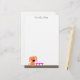 Artigos de papelaria doces personalizados com seu nome. Flores alaranjadas bonitos do cão e do coração.