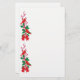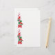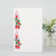 Os cardeais vermelhos brilhantes empoleiram-se em um sprig do azevinho na beira esquerda destes artigos de papelaria bonito do feriado. O azevinho é carregado com bagas vermelhas, e amarrado na parte inferior com um arco vermelho. A imagem é repetida duas vezes ao longo do lado esquerdo, saindo da abundância da sala para sua mensagem do Natal. Seja certo ver os produtos de harmonização em nossa loja.