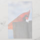 Papel de carta com fotografia de um bonito cardeal vermelho parado num toco de madeira.
