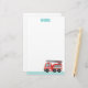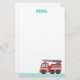 Uns artigos de papelaria com um carro de bombeiros vermelho bonito que tenha as listras brancas em seu lado e em uma escada retrátil com mangueira. Beira inclinada das listras azuis no fundo. Paleta de cor de vermelho, de azul, o cinza e o branco. O texto lê o "memorando". Excelente para o pouco uns, especialmente meninos, que amam brinquedos e viaturas de incêndio do veículo!